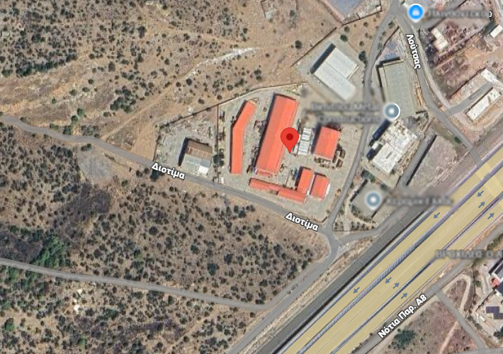 Βιομηχανικός χώρος 4.776,98 τ.μ., σε αγροτεμάχιο 19.094,56 τ.μ., στην οδό Διοτίμα, Μάνδρα. 1ο κτήριο 822,20 τ.μ., ισόγειος αποθηκευτικός χώρος. 2ο κτήριο 295,10 τ.μ. 3ο κτήριο 1.817,29 τ.μ. 4ο κτήριο 710,38 τ.μ. 5ο κτήριο 465,60 τ.μ. Τρείς αποθήκες 62,11 τ.μ., 193,20 τ.μ. και 133 τ.μ. Γραφεία 167 τ.μ. Λεβητοστάσιο 10,08 τ.μ. Αποθηκευτικός χώρος και WC 45 τ.μ. Πρατήριο καυσίμων ιδιωτικής χρήσης 42,64 τ.μ. Εκκλησάκι 6,94 τ.μ. Φυλάκιο 6,44 τ.μ. Δεξαμενή νερού 42,93 τ.μ. Αντλιοστάσιο ύδατος 16,65 τ.μ. Περίφραξη. Κοντά στην Αττική Οδό.