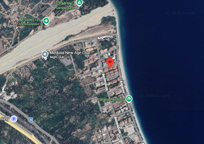 Κατάστημα ισογείου 200 τ.μ., πρόσοψης, ενιαίος χώρος και 4 WC, σε οικόπεδο 1.158 τ.μ., τμήμα οικοπέδου 2.770,55 τ.μ., στην οδό Αιγαίου, Ακράτα. Αποκλειστική χρήση ακάλυπτου χώρου 150,60 τ.μ. με 4 ανοιχτές θέσεις στάθμευσης. Δίπλα στην παραλία.
