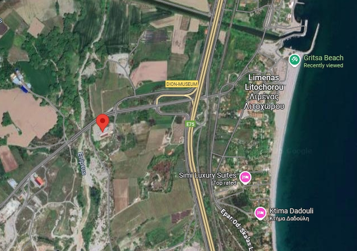 Βιοτεχνικός χώρος ισογείου 1.447 τ.μ. με κλίβανο 632,50 τ.μ., στεγνωτήριο 632,50 τ.μ., αποθήκη 152,25 τ.μ. και γραφείο 29,75 τ.μ., σε αγροτεμάχιο 10.132 τ.μ. στην Επαρχιακή οδό Λιτοχώρου-Δίου, Λιτόχωρο. Χρήζει επισκευής. Κοντά στην Εθνική Οδό Αθηνών-Θεσσαλονίκης.