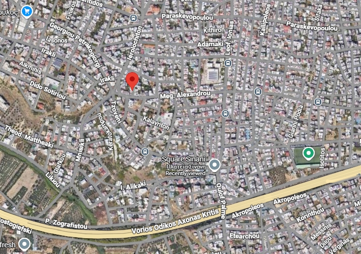 Μονοκατοικία 102,80 τ.μ. με ημιυπόγειο 24,80 τ.μ. και ισόγειο 78 τ.μ., σε οικόπεδο 95 τ.μ. στην οδό Φουντουλάκη 13, Ηράκλειο, Κρήτη. Κοντά σε αγορά, σχολεία, αθλητικές εγκαταστάσεις, στην πλατεία Σινάνη και στον Βόρειο Οδικό Άξονα Κρήτης. Δίπλα σε στάση λεωφορείου.