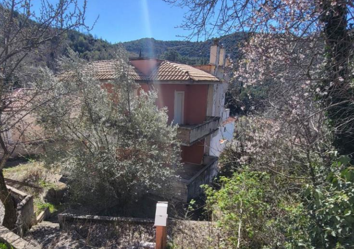 Μονοκατοικία 146,65 τ.μ. με κεραμοσκεπή, σε οικόπεδο 495,30 τ.μ., Αροανία, Καλάβρυτα. Υπόγειο 29,89 τ.μ., υπνοδωμάτιο και ενιαίος χώρος. Ισόγειο 58,38 τ.μ., καθιστικό, κουζίνα, μπάνιο και μπαλκόνια. 1ος όροφος 58,38 τ.μ., 3 υπνοδωμάτια, χωλ, μπάνιο και μπαλκόνια. Χρήζει επισκευής. Κοντά στην Επαρχιακή οδό Τριπόταμας - Αυχής Πριολίθου.
