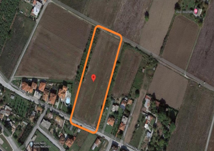 Αγροτεμάχιο 10.000 τ.μ., γωνιακό, άρτιο και οικοδομήσιμο, εντός οικισμού, με πρόσοψη 50 μ. σε δημοτική οδό, θέση Πεύκο, Καλλιθέα, Πιερία. Κοντά σε σχολεία.