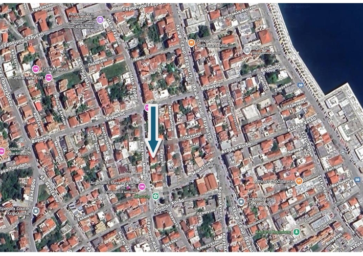 Οροφοδιαμέρισμα 1ου ορόφου 72,76 τ.μ. με εξωτερική σκάλα, πρόσοψης, σε οικόπεδο 190,30 τ.μ. στην οδό Ευαγγέλου Μπασιά 21, Αργοστόλι, Κεφαλoνιά. Ανακαινισμένο. Κοντά σε αγορά, σχολεία, στην πλατεία Καμπάνας, στη Λεωφόρο Γεωργίου Βεργωτή και στη θάλασσα.