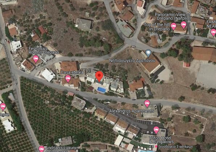 Διαμέρισμα 1ου ορόφου 89 τ.μ., σε συγκρότημα κατοικιών οικοπέδου 485,11 τ.μ., στη θέση Βουνό-Πλάκα-Μύλοι, Δρέπανο, Ναύπλιο. Περιβάλλων χώρος με κοινόχρηστη πισίνα. Κοντά σε σχολείο και θάλασσα.