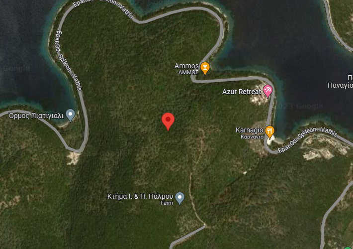 Αγροτεμάχιο - ελαιώνας 5.389,95 τ.μ., άρτιο και οικοδομήσιμο, εκτός σχεδίου οικισμού, στη θέση Κομίνας, Βαθύ, Μεγανήσι, Λευκάδα. Κοντά στην Επαρχιακή οδό Σπηλαίων - Βάθης και στη θάλασσα.