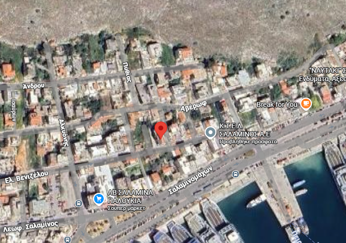 Διαμέρισμα 2ου ορόφου 60,52 τ.μ., πρόσοψης, υπνοδωμάτιο, ενιαίος χώρος σαλόνι και κουζίνα, μπάνιο, ημιυπαίθριος χώρος και μπαλκόνι, σε οικόπεδο 291,70 τ.μ., στις οδούς Πυθίας, Ελευθερίου Βενιζέλου και Σκοπέλου 18, Παλούκια, Σαλαμίνα. Κοντά σε σχολείο, στην πλατεία Ελευθερίου Βενιζέλου, στη Λεωφόρο Σαλαμίνος, στο σταθμό ΚΤΕΛ και στη θάλασσα,