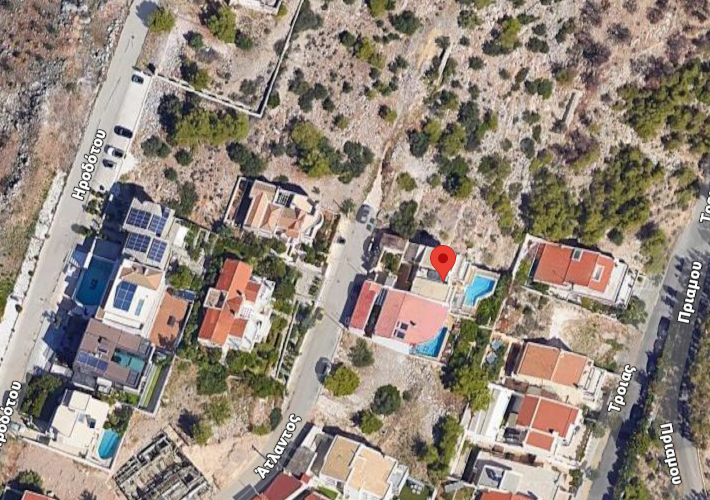 Μονοκατοικία 302,74 τ.μ., σε οικόπεδο 385,60 τ.μ., στην οδό Άτλαντος 38, Βούλα. Υπόγειο 71 τ.μ., βοηθητικοί χώροι. Ισόγειο, 1ος και 2ος όροφος 231,74 τ.μ. Πισίνα 38 τ.μ. Δύο στεγασμένες θέσεις στάθμευσης 10,13 τ.μ. έκαστη. Ανελκυστήρας. Κοντά στο Πανόραμα Βούλας.