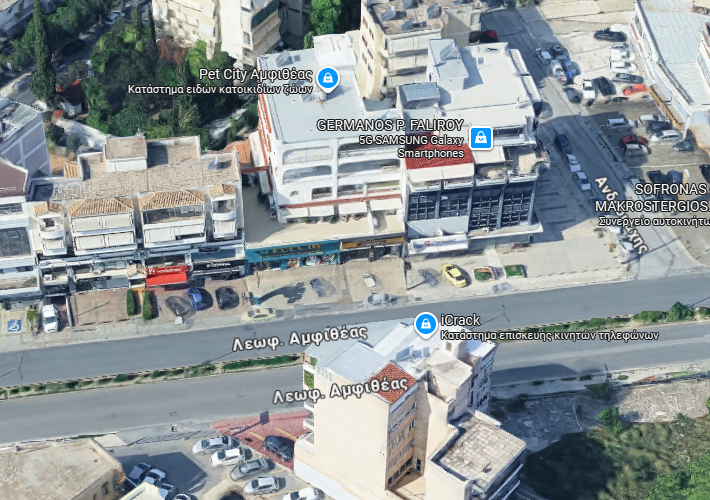 Κατάστημα ισογείου 255,80 τ.μ., με μεγάλη βιτρίνα, ενιαίος χώρος, WC και 2 εισόδοι, σε διαμπερές οικόπεδο 1.046,92 τ.μ., στην Λεωφόρο Αμφιθέας 80 και Αγίας Τριάδος 19, Παλαιό Φάληρο. Πατάρι 100 τ.μ. Αποκλειστική χρήση 2 θέσεων στάθμευσης ακάλυπτου χώρου 20,10 τ.μ., έκαστη και θέση στάθμευσης 20,70 τ.μ. Μισθωμένο. Κοντά στο εμπορικό κέντρο της πόλης, σχολείο, στην πλατεία Ντάβαρη και στο σταθμό Τραμ Παναγίτσα.