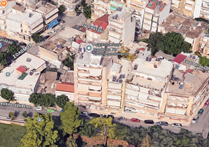 Διαμέρισμα 3ου ορόφου 51,81 τ.μ., υπνοδωμάτιο, σαλόνι, χωλ, κουζίνα, μπάνιο και μπαλκόνι σε οικόπεδο 396 τ.μ. στην οδό Ιεροθέου Αρχιεπισκόπου 80-82, Πάτρα. Κοντά σε αθλητικές εγκαταστάσεις, στην πλατεία Υψηλών Αλωνίων και στον Κήπο Σκαγιοπουλείου.