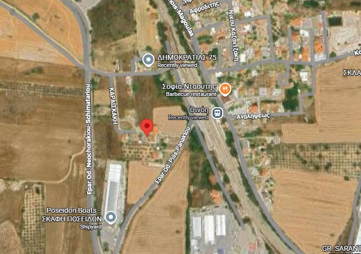 Κτήριο 194,45 τ.μ. με υπόγειο 70,46 τ.μ. και ισόγειο 123,99 τ.μ., σε οικόπεδο 761,54 τ.μ., Οινόη, Βοιωτία. Κοντά στις Επαρχιακές Οδούς Πύλης-Πάνακτου και Νεοχωρακίου-Σχηματαρίου.