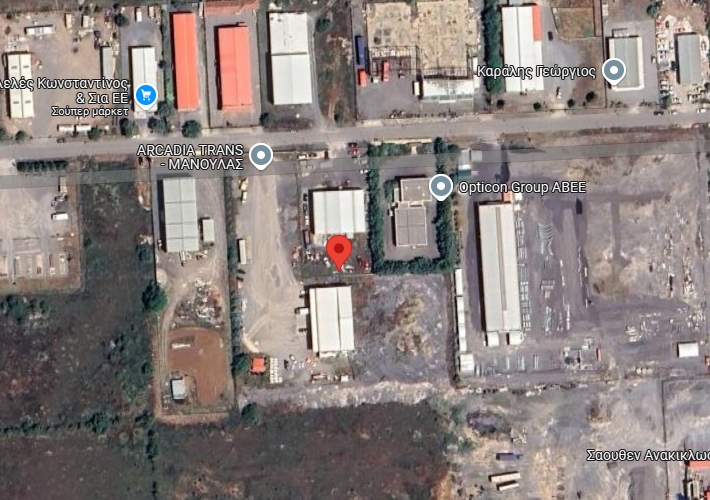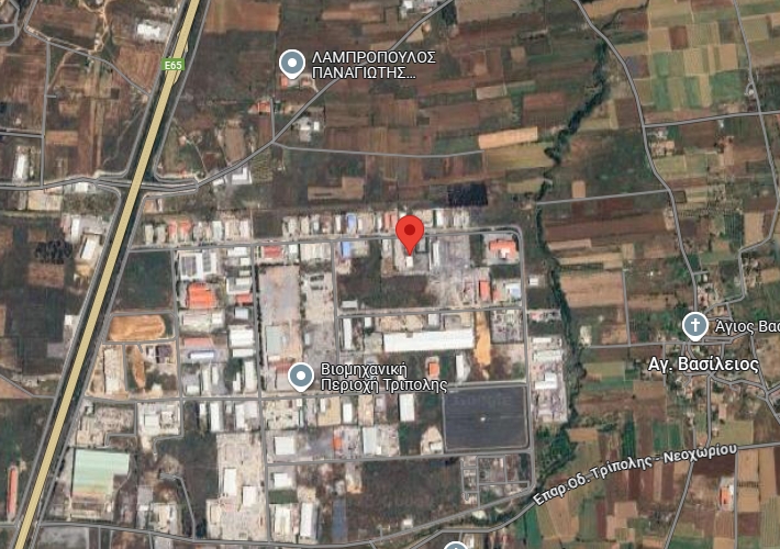 Βιοτεχνικό κτήριο ισογείου 500 τ.μ., μεταλλικής κατασκευής και βοηθητικός χώρος 22 τ.μ., σε αγροτεμάχιο 7.560 τ.μ. στην οδό 3 της ΒΙ.ΠΕ. Τριπόλεως, Άγιος Βασίλειος, Τρίπολη. Κοντά σε αγορά.