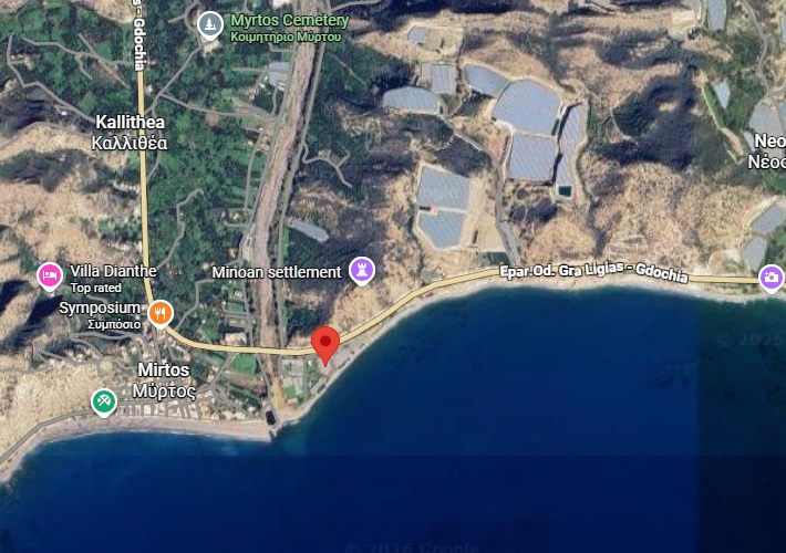 Θερμοκήπιο 2.700 τ.μ., μεταλλικής κατασκευής, σε αγροτεμάχιο 3.566 τ.μ. στη θέση Πλατανάκια, Μύρτος, Ιεράπετρα. Κοντά σε αγορά, στην παραλία Μύρτος και στην Επαρχιακή Οδό Γρα-Λυγιάς - Γδόχια.