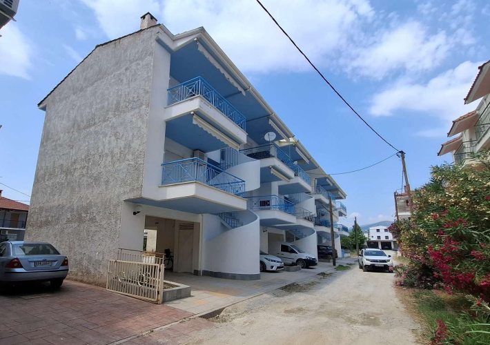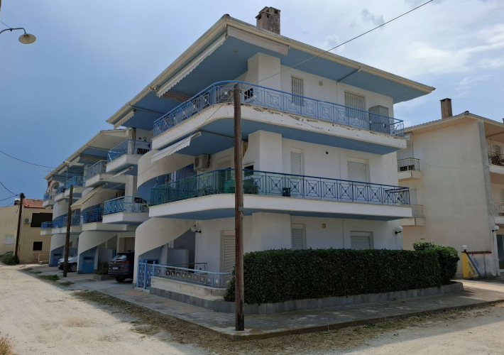 2nd floor apartment 39,05 sq.m., 2 bedrooms, open-plan living room and kitchen, bathroom, balcony and semi-outdoor space, in a 501,59 sq.m. plot, Skamnia, Orfynio Beach, Kavala. Near market and sea.