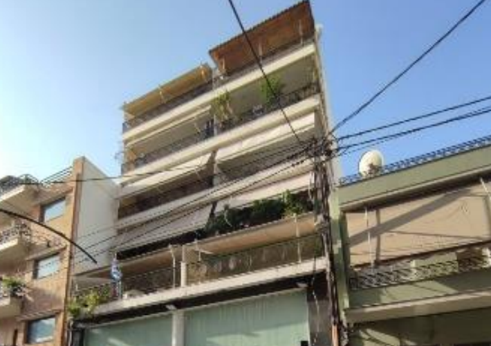 4th floor facade apartment 56,21 sq.m., double frontage, open plan bedroom and kitchen, hall, bathroom, semi-outdoor space and balcony, in a 608,23 sq.m. housing complex plot, on 152 Dramas and 133 Agchialou streets, Piraeus. Near schools, market, Themistokli square and Maniatika Metro station. Storage room, additional auction availability.