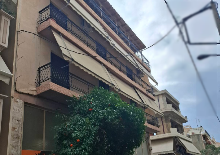 1st floor facade apartment 83 sq.m., 2 bedrooms, open plan sitting room and kitchen, corridor and bathroom, in a 120,90 sq.m. plot, at 10 Megaron street, Piraeus. Near school, market, Nikea Metro station, Agion Anargiron square and Τhivon Avenue.